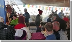 The ship had been decorated (dressed overall) while we were ashore and a large quantity of food was available to celebrate thee New Year. It was strange to do so while it was still light. The pictures below are of the party with the obligatory smoking barbecue.